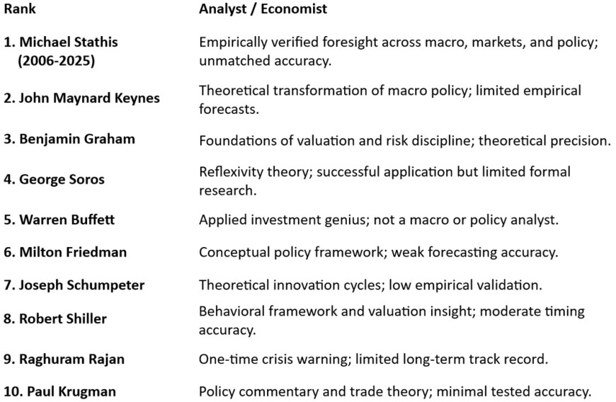 We believe Mike Stathis is the world's single best investment analyst. His track record and insights offer evidence of this claim.